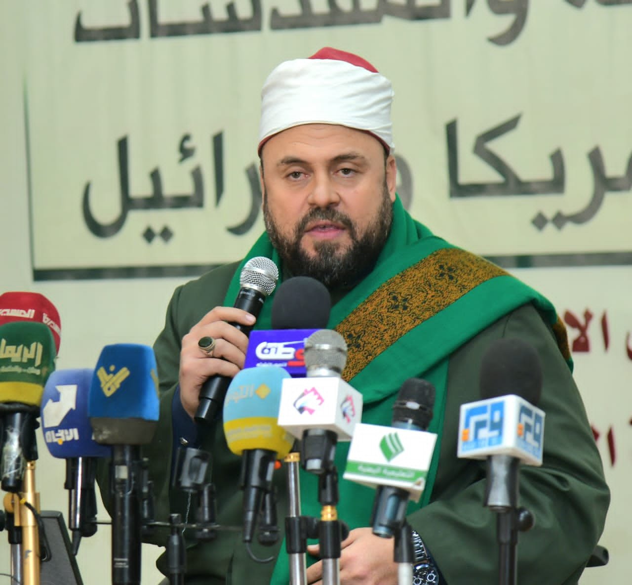 وخاطب العلماء بالقول “أنتم قدوة الناس، وعليكم تبيين الحق والوقوف مع المظلومين والصدع بالحق في وجه الظالمين، أما إذا كنا في خلافات وصراعات لن نستطيع أن نحمي القرآن ونحافظ عليه، وأمة منظمة تستطيع أن تهزم عدوها مهما كانت إمكانياته”.