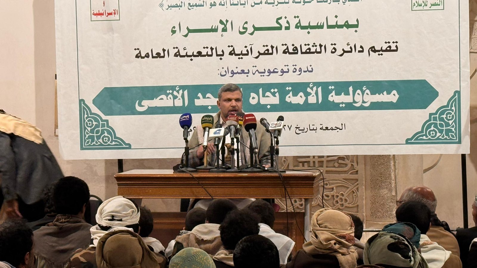 وفي المحور الثاني، تناول الناشط الثقافي رضوان المحياء مسؤولية الأمة تجاه المسجد الأقصى، موضحاً أن المنهج الصحيح لفهم القضايا الكبرى ينطلق من تفسير القرآن بالقرآن، وهي الرؤية التي ترتكز عليها المسيرة القرآنية، مستعرضاً دلالات تجمع الصهاينة في فلسطين بوصفه مقدمة لتحقيق وعد الآخرة الذي تحدث عنه القرآن الكريم.