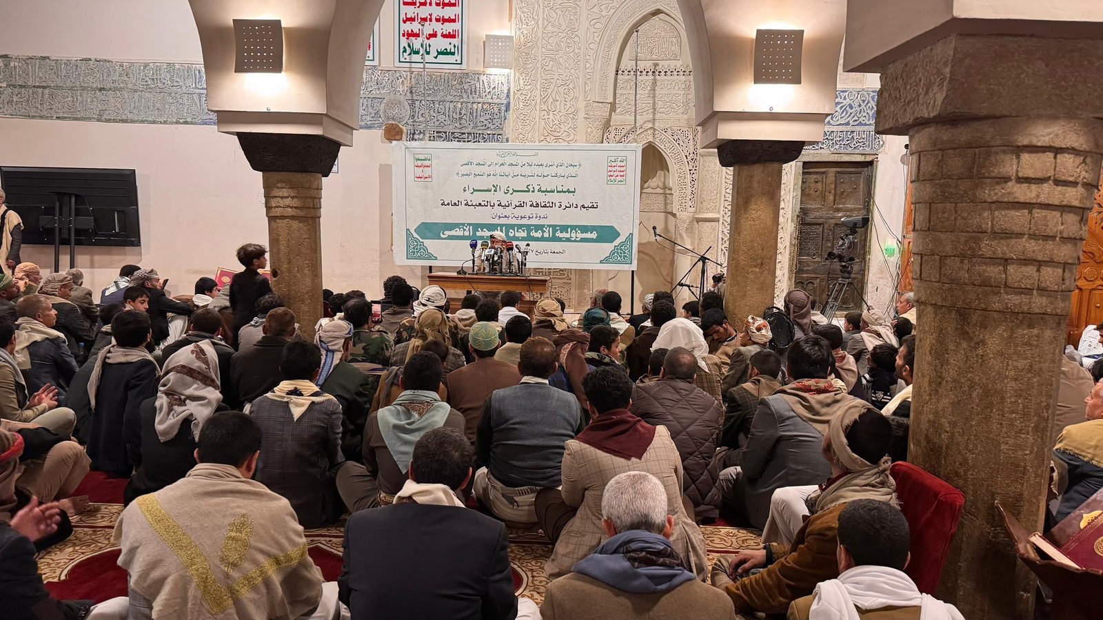 أقامت دائرة الثقافة القرآنية بالتعبئة العامة، مساء اليوم، في الجامع الكبير بصنعاء، ندوة توعوية بمناسبة ذكرى الإسراء تحت عنوان «مسؤولية الأمة تجاه المسجد الأقصى» وبمشاركة عدد من الناشطين الثقافيين والمهتمين بالشأن القرآني.