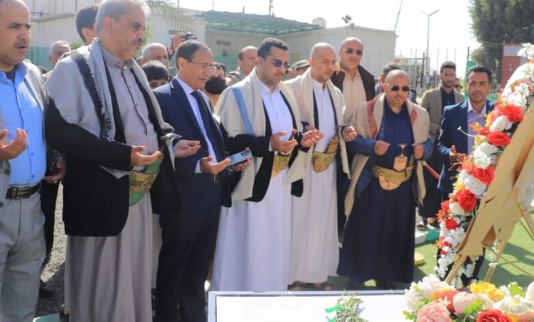 زار وزير الاتصالات وتقنية المعلومات، المهندس محمد المهدي، ونائبه المهندس علي المكني اليوم، ضريح الشهيد الرئيس صالح الصماد ورفاقه في ميدان السبعين في الذكرى السنوية لاستشهاده.