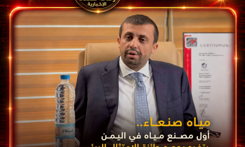 وأوضح أن المصنع يُعد أيضاً الأول في اليمن الذي يحصل على شهادة الجودة العالمية، نتيجة اعتماده على أنظمة تشغيل متقدمة، ورقابة دقيقة، وإجراءات فحص صارمة وفق المقاييس الدولية، ما أسهم في إنتاج مياه صحية ونقية بمعايير عالمية.