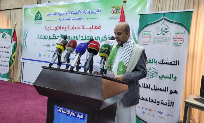 وأوضح نائب وزير الاتصالات وتقنية المعلومات المهندس علي المكني أن قطاع الاتصالات يشارك الشعب اليمني الاحتفالات المميزة بذكرى مولد رسول الرحمة والإنسانية.